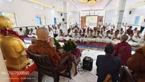 पूजनीय भिक्खू संघाच्या धम्मदेशनेचा अनुवाद भंते सुगत शांतेय यांनी केले. धम्मदेसनेत त्यांनी सांगितले की, ध्यान साधना ही मानवासाठी अत्यंत गरजेची आहे व दैनंदिन जीवनासाठी अत्यावश्यक आहे. विपश्यना ही तथागत भगवान बुद्धांनी जगाला दिलेली अमूल्य भेट आहे. धम्माची चळवळ गतिमान करणारे भिक्खू यांना वृद्धकाळात अनेक कठीण परिस्थितीचा सामना करावा लागतो . करिता भिख्खू निवास व विपश्यना केंद्राची गरज असते. समाजाने त्यांना सर्व सोयी उपलब्ध करून द्याव्यात व त्यांच्या आरोग्याची काळजी घेणे हे प्रत्येक उपासकांचे कर्तव्य आहे असे ते म्हणाले. सदरील कार्यक्रमाचे निमंत्रक भीमराव वायवळ यांनी कार्यक्रमाचे प्रास्ताविक केले.