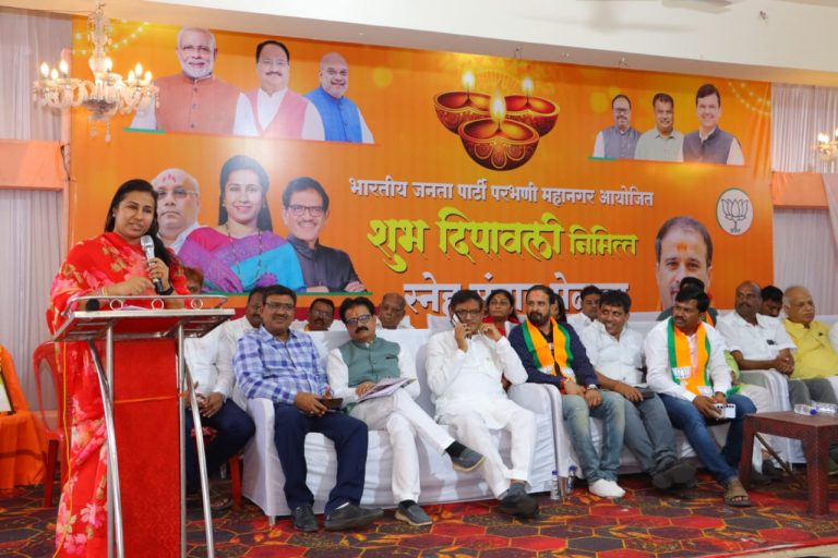पालकमंत्री मेघनादीदी बोर्डीकर यांनी आपल्या मार्गदर्शनपर भाषणात सांगितले की, “भाजपा हा कार्यकर्त्यांच्या कष्टांवर उभा असलेला पक्ष आहे. आगामी परभणी महानगरपालिका निवडणुकीत प्रत्येक कार्यकर्त्याने एकसंघ राहून पक्षाचे बळ अधिक वाढवावे. दिवाळी हा आनंद, ऐक्य आणि नवचैतन्याचा सण आहे — त्याच उत्साहाने आपण जनतेत जावे आणि विकासाचा दीप प्रज्वलित करावा.”