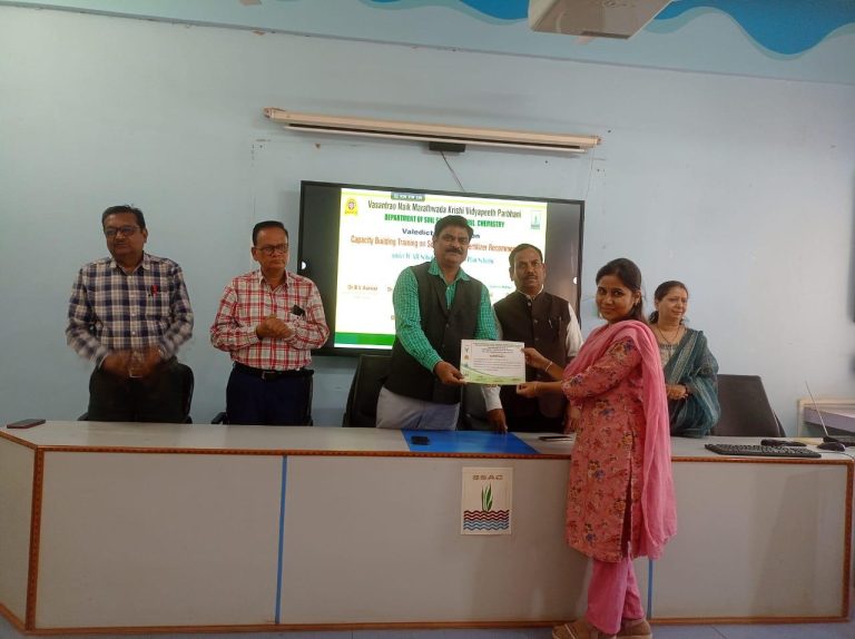 परभणी (प्रतिनिधी) १० ते १२ फेब्रुवारी दरम्यान मृद विज्ञान विभागातर्फे भारतीय कृषी संशोधन परिषद नवी दिल्ली पुरस्कृत तीन दिवसीय प्रशिक्षण शिबिराचा समारोप करण्यात आला.