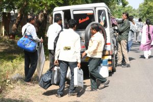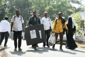 परभणी येथील कृषी अभियांत्रिकी व तंत्रज्ञान महाविद्यालयात ठेवण्यात आलेले मतदान साहित्य परभणी विधानसभा मतदारसंघातील मतदान केंद्रांवर घेऊन जाण्यासाठी सकाळीच कर्मचारी आले होते. यावेळी निवडणूक निरीक्षक श्रीमती के. हरिता, जिल्हाधिकारी रघुनाथ गावडे, पोलीस अधीक्षक रवींद्रसिंह परदेशी, अपर जिल्हाधिकारी डॉ. प्रताप काळे, निवासी उपजिल्हाधिकारी अनुराधा ढालकरी, उपजिल्हा निवडणूक अधिकारी जनार्धन विधाते, परभणी विधानसभा मतदारसंघाचे निवडणूक निर्णय अधिकारी दत्तू शेवाळे हे यावेळी उपस्थित होते. (छायाचित्रे- उत्तम बोरसुरीकर)