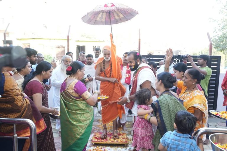 पूर्णा (प्रतिनिधी( श्री सद्गुरू दाजी महाराज जन्मोत्सव व वैदिक गुरुकुलचा रौप्य महोत्सव या निमित्ताने काल दि.9 जानेवारी ,गुरुवार रोजी श्रीमद् जगद्गुरु शंकराचार्य हंपी विरूपाक्ष , हम्पीपीठ यांचे श्रीक्षेत्र धनगर टाकळी येथे आगमन झाले. भारतीय संस्कृतीनुसार त्यांचे भव्य स्वागत करण्यात आले